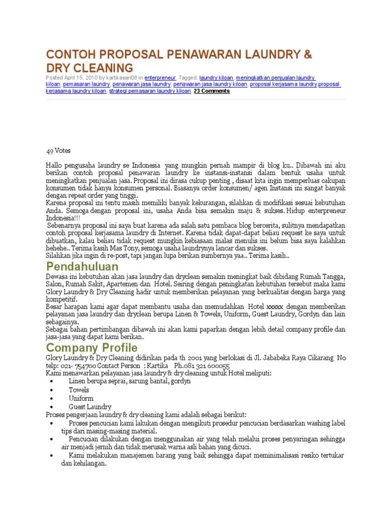 Dewasa ini kebutuhan akan jasa laundry dan dryclean semakin meningkat baik dibidang rumah tangga, . Surat penawaran jasa laundry hotel ini saya kirim ke user dan. Format gambar contoh proposal kerjasama wedding . Contoh penawaran jasa laundry untuk hotel. Doc) contoh proposal laundry untuk hotel | pramudya herlambang.